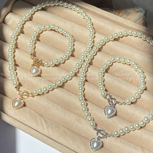 گردنبند قلب و تکمروارید ۲رج استیل ط