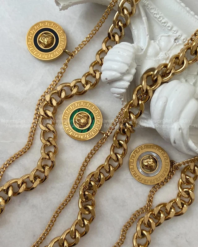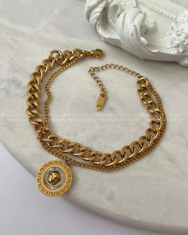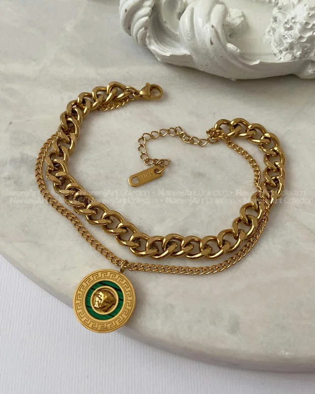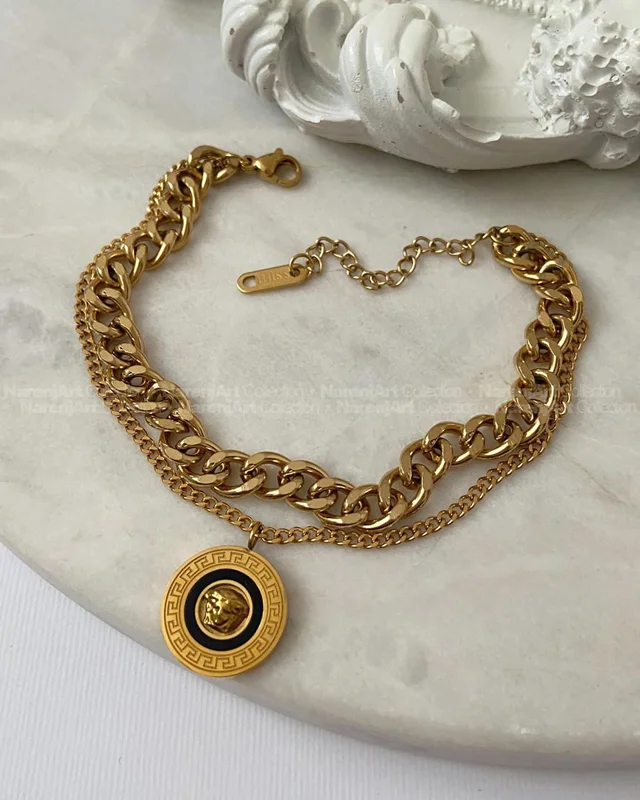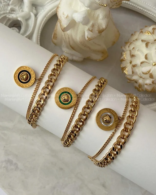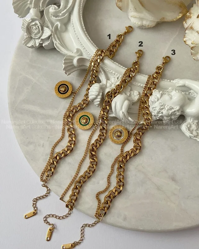 این دستبندهای ۲ رج ورساچه ترند جذابمون بالاترین کیفیت استیل طلایی هستن که آبکاری طلا شدن و ضدحساسیتن. کوتینگشون هایکوالیتیه و رنگ ثابتن که برای استفاده دائمی حتی در شرایط مرطوب عالین. قیمت و موجودیشونو میتونین برحسب اعداد مندرج در عکس دوم چک کنین.