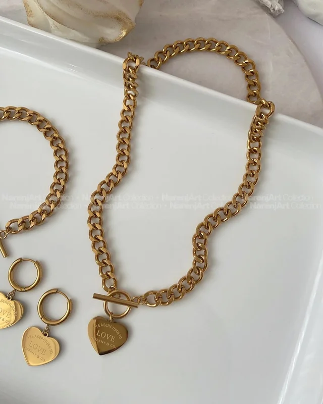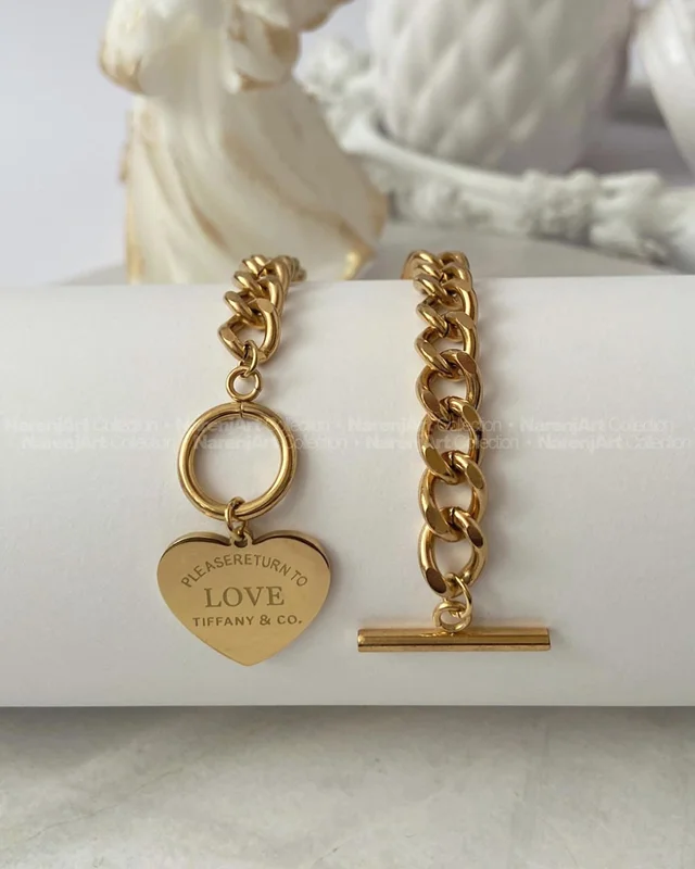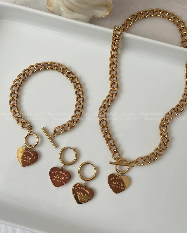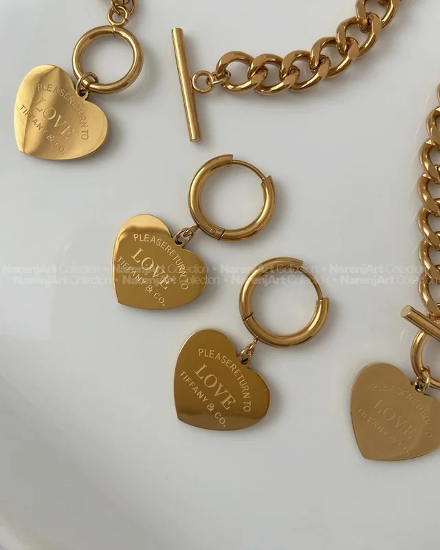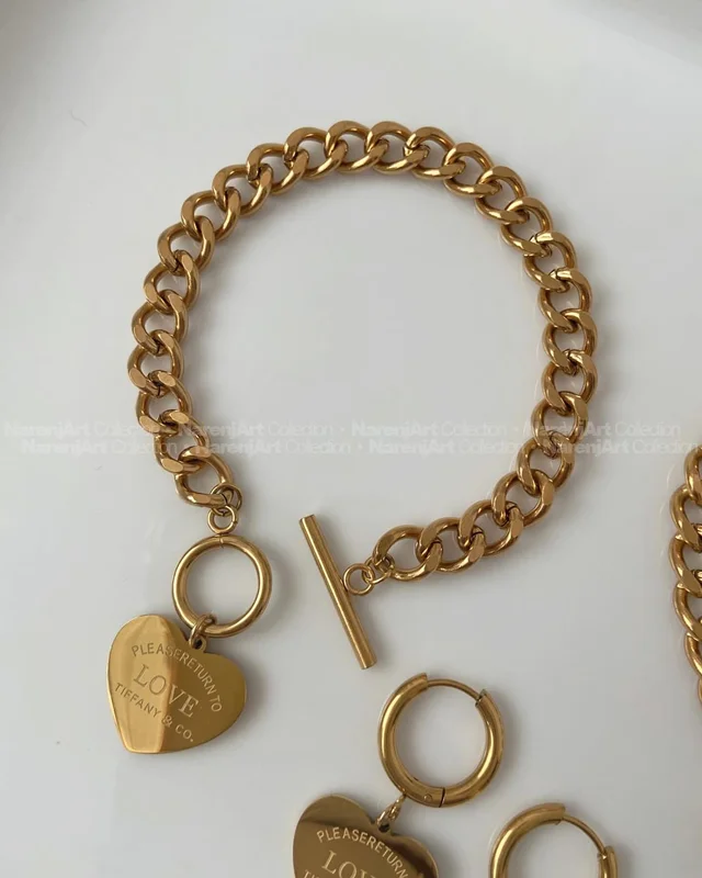 این نیمست جدید تیفانی پرطرفدار که شامل گردنبند و دستبند و همچنین گوشواره هستش بالاترین کیفیت استیل طلاییه که رنگ ثابت دائمیه و ضدحساسیته که برای استفاده مداوم روزانه حتی در شرایط مرطوب عالیه. این نیمست هرکدوم بصورت تکی و هم بصورت نیمست باهم قابل سفارشن.