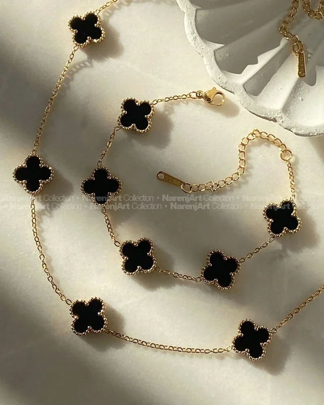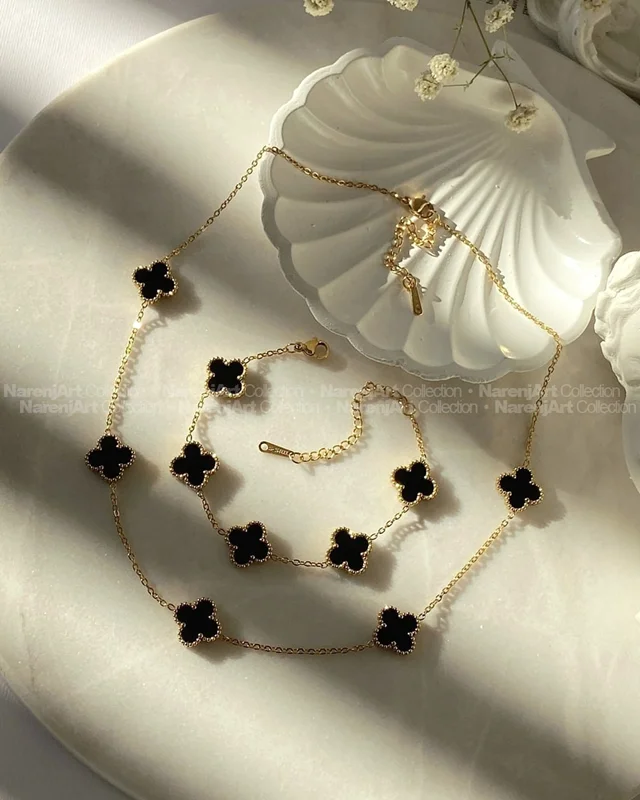 این نیمست ونکلیف ترند و پرطرفدارمون که شامل گردنبند و دستبند هستش بالاترین کیفیت استیل طلایی هستن که آبکاری طلا شدن و آنتیباکتریالن که باعث میشه ضدحساسیت باشن. رنگ ثابتن و برا استفاده دائمی حتی در شرایط مرطوب مناسبن. این نیمست باهم یا بصورت تکی قابل سفارشن.