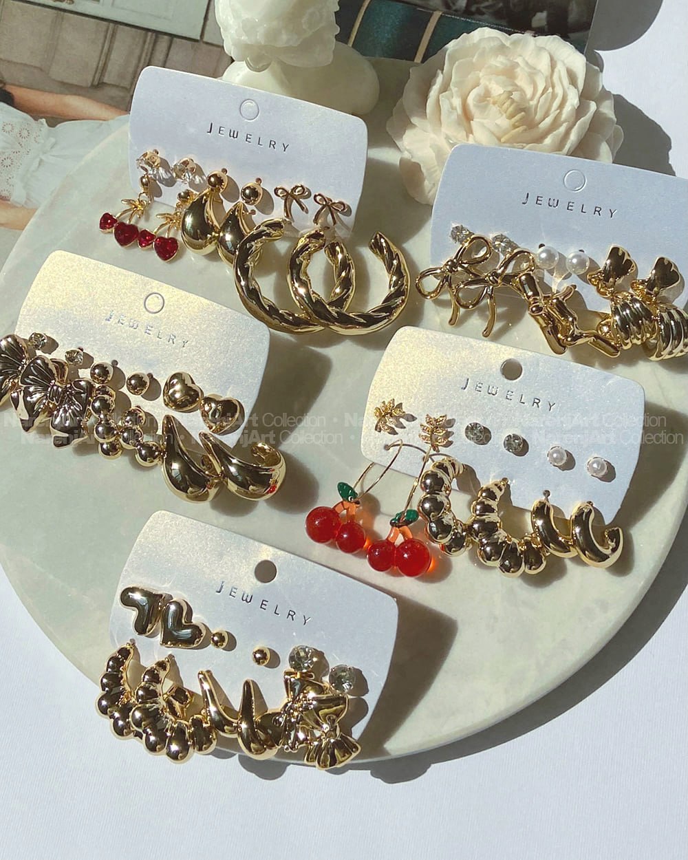 این پک‌های گوشواره طلایی جدیدمون کوپر باکیفیتن که آبکاری شدن و ضدحساسیتن. همه مدلاشون سبکن که گوش رو اذیت نمی‌کنن و میخ‌شونم استیله. جزو کارای مراقبتی هستن یعنی بهتره در معرض الکل یا شوینده‌ها نباشن. مدلاشونم برحسب اعداد مندرج در دومین عکس‌شون می‌تونین انتخاب کنین.