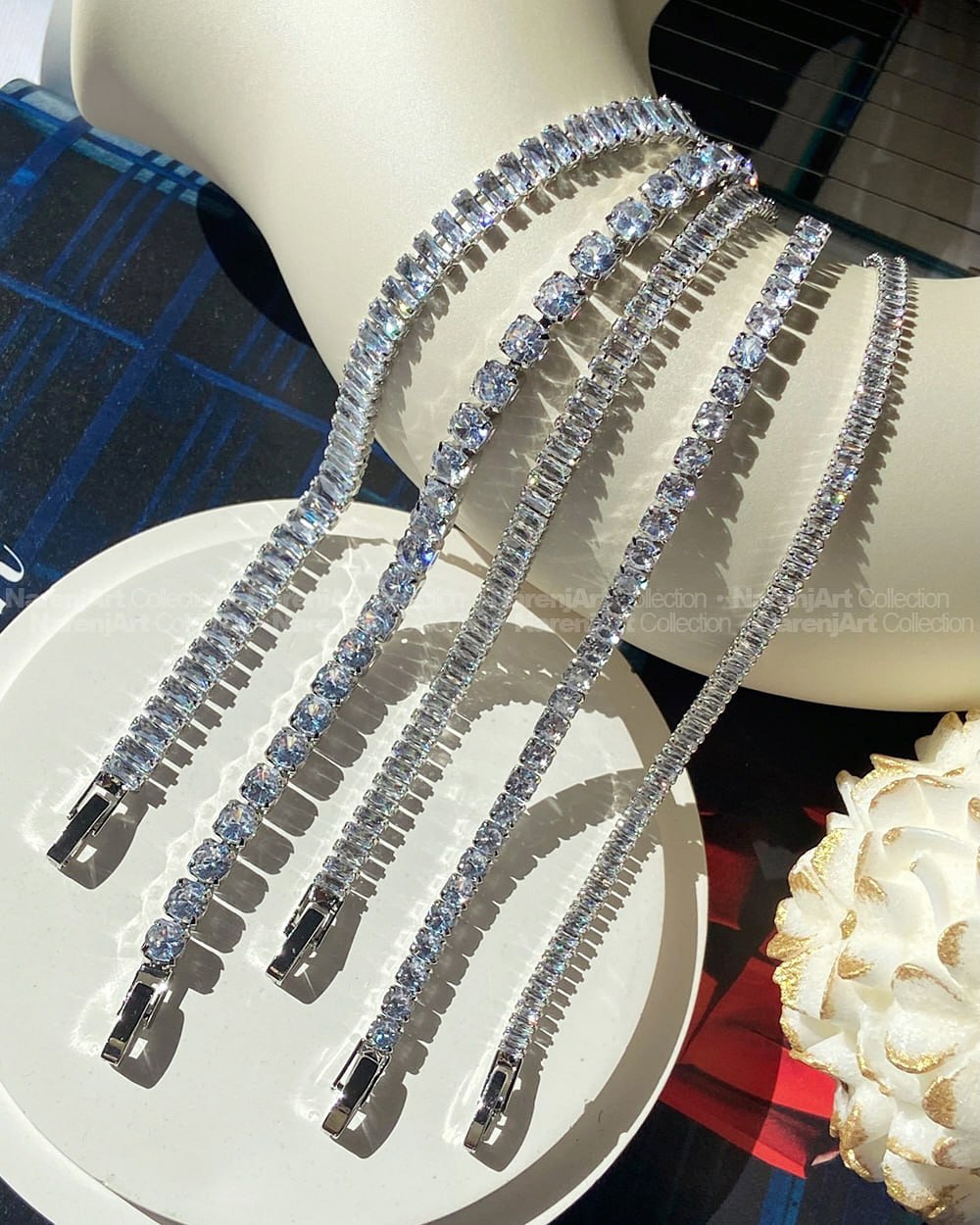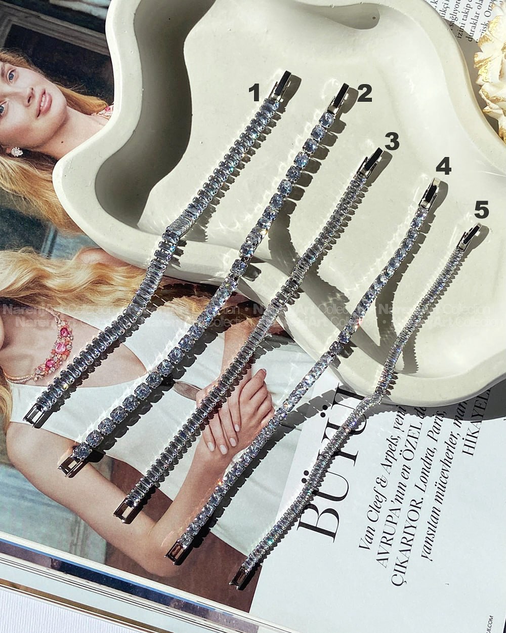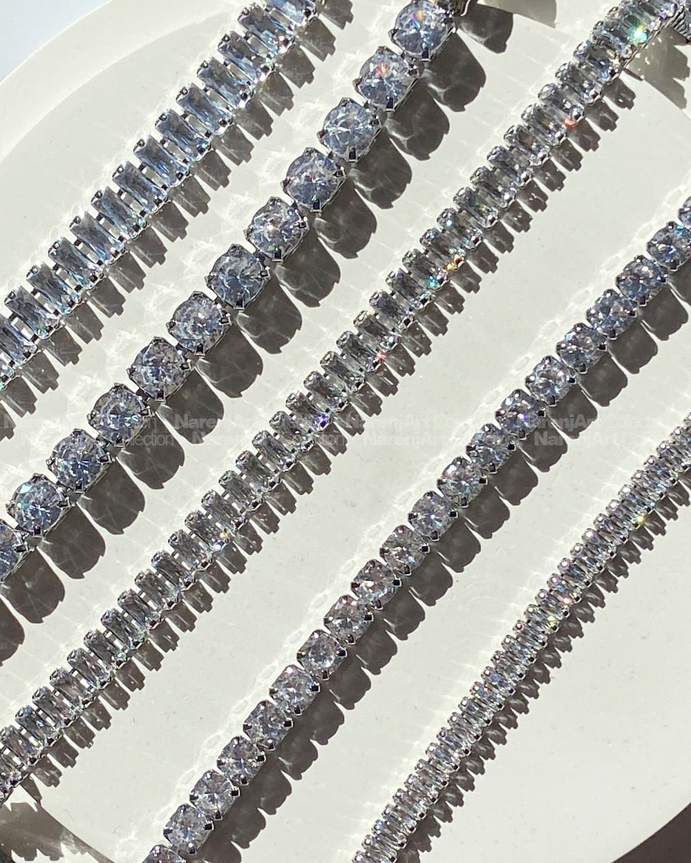این دستبندای جواهریمون بالاترین کیفیت کوپرن که آبکاری هایکوالیتی شدن و ضدحساسیتن که جزو کارای رنگ ثابت محسوب میشن و برای مراقبت هر چه بهتر پیشنهاد میکنم در معرض شویندهها یا الکل نباشن. نگیناشون زیرکونیومه و بهترین نوع نگین هستن. کیفیت مخراجکاریشون فوقالعاده بالاست که باعث میشه نگینریزی نداشته باشن. طول هر دستبند ۱۸ سانتیمتر هست. قیمتا و موجودیشون رو میتونین برحسب اعداد مندرج در عکس دوم چک کنین.