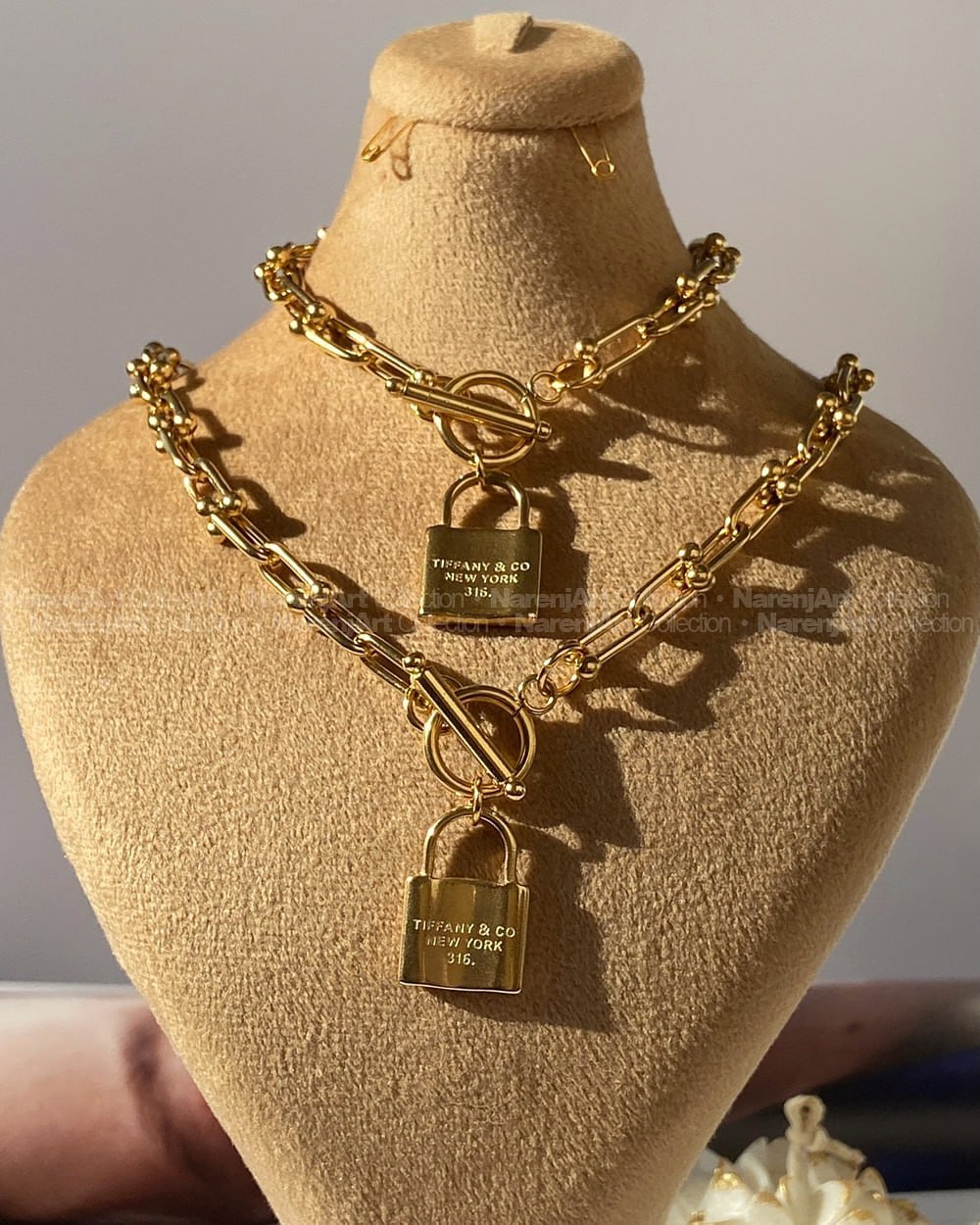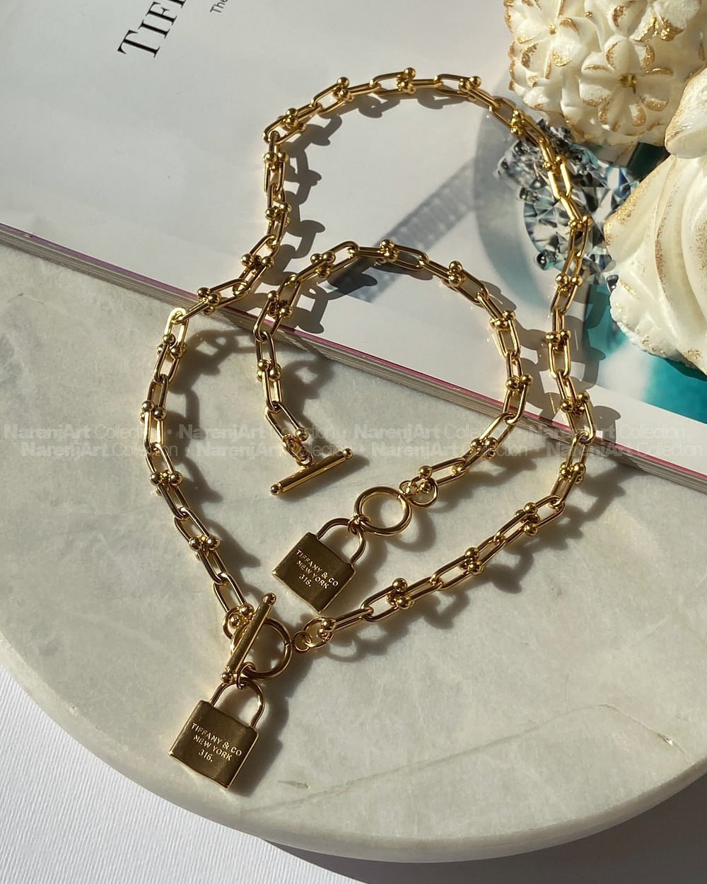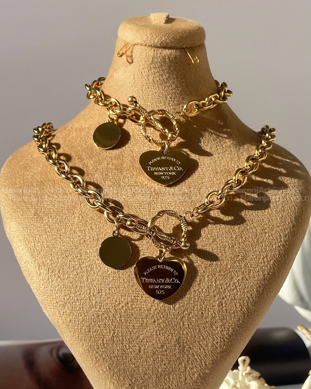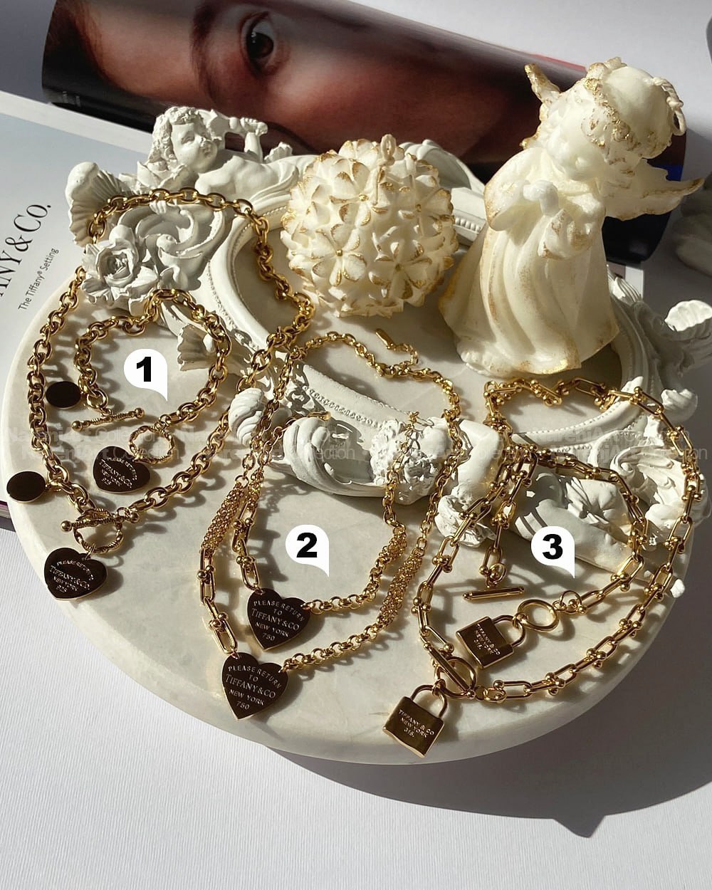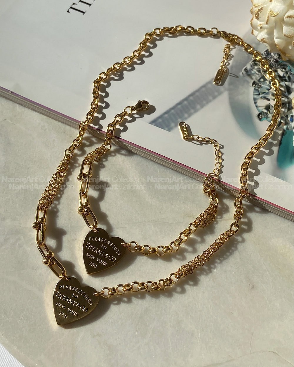 این نیمستهای برند محبوب تیفانی همگی استیل طلایی هستن که آبکاری طلا شدن و ضدحساسیتن. رنگ ثابتن که برای استفاده مداوم روزانه عالین. این نیمستها شامل گردنبند و دستبند هستن که بصورت ست و هر دو باهم تقدیمتون میشه. طول گردنبندهاشون ۴۵س و طول دستبندها هم ۱۸س هستن. قیمتا و موجودیشون رو میتونین برحسب اعداد مندرج در عکس دوم چک کنین.