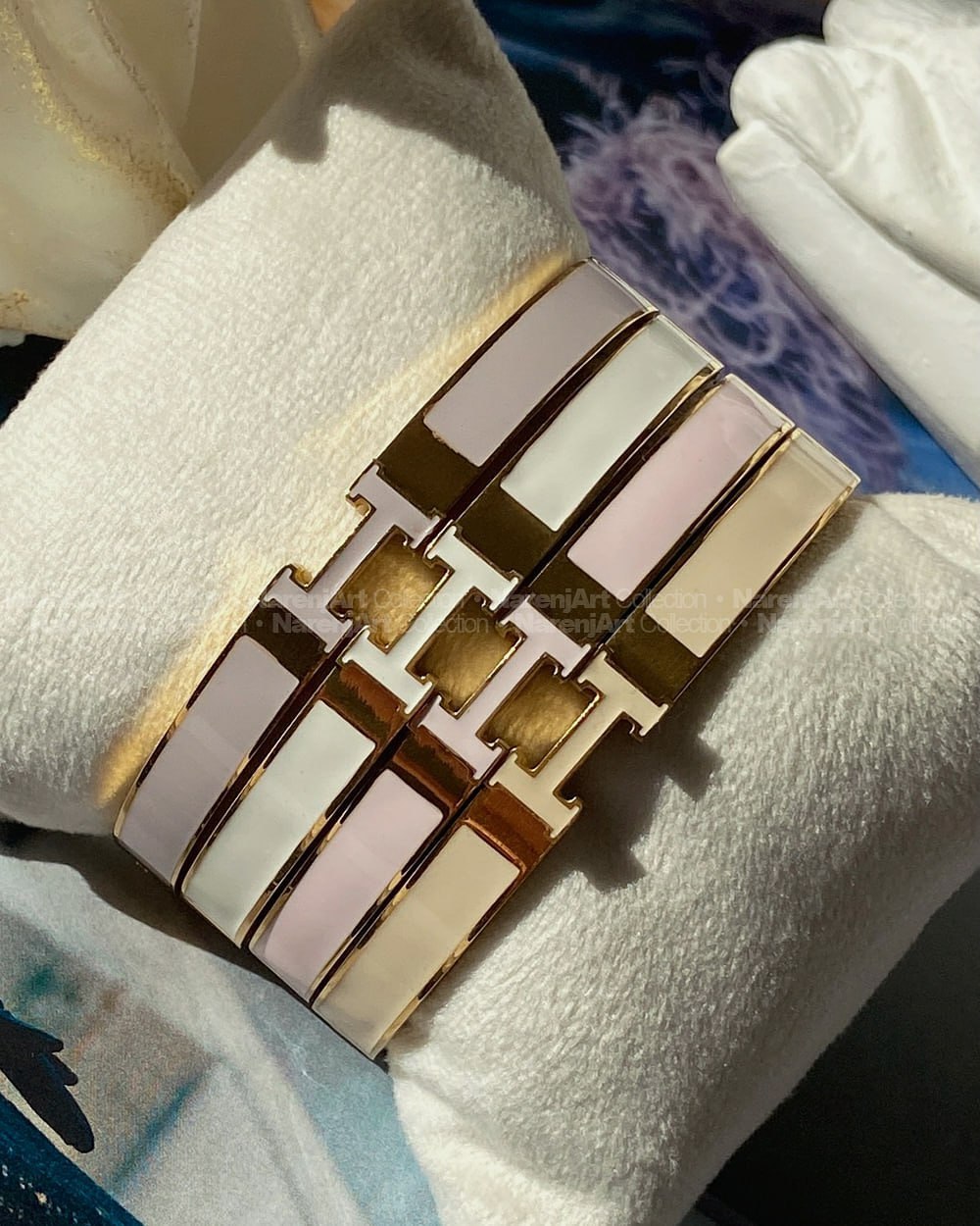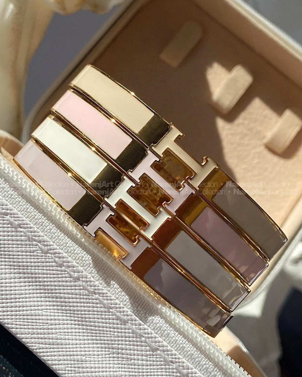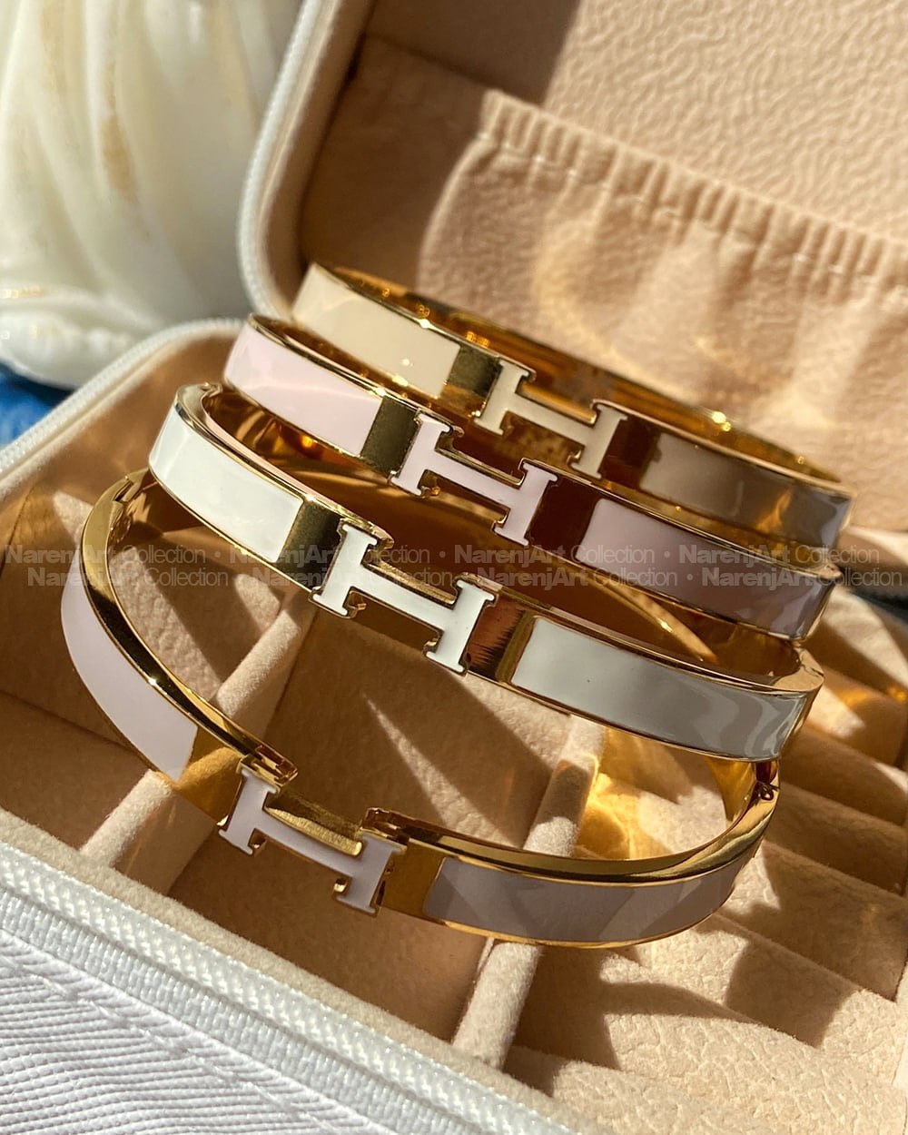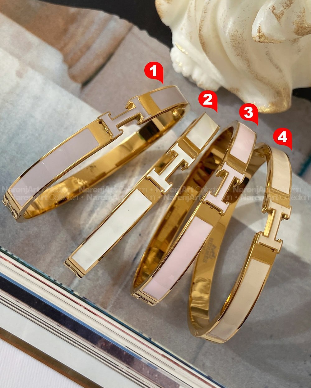این بنگلهای هرمس ترند و جدیدمون بالاترین کیفیت استیل طلایی هستن که آبکاری طلا شدن و ضدحساسیتن. میناکاری و کوتینگشون هایکوالیتیه که رنگ ثابتن و برای استفاده دائمی حتی در شرایط مرطوب عالین. سایزشون برا دورمچ ۱۵ تا ۱۸ سانتیمتر مناسبن. قیمت و موجودیشونو میتونین برحسب اعداد مندرج در عکس دوم چک کنین.