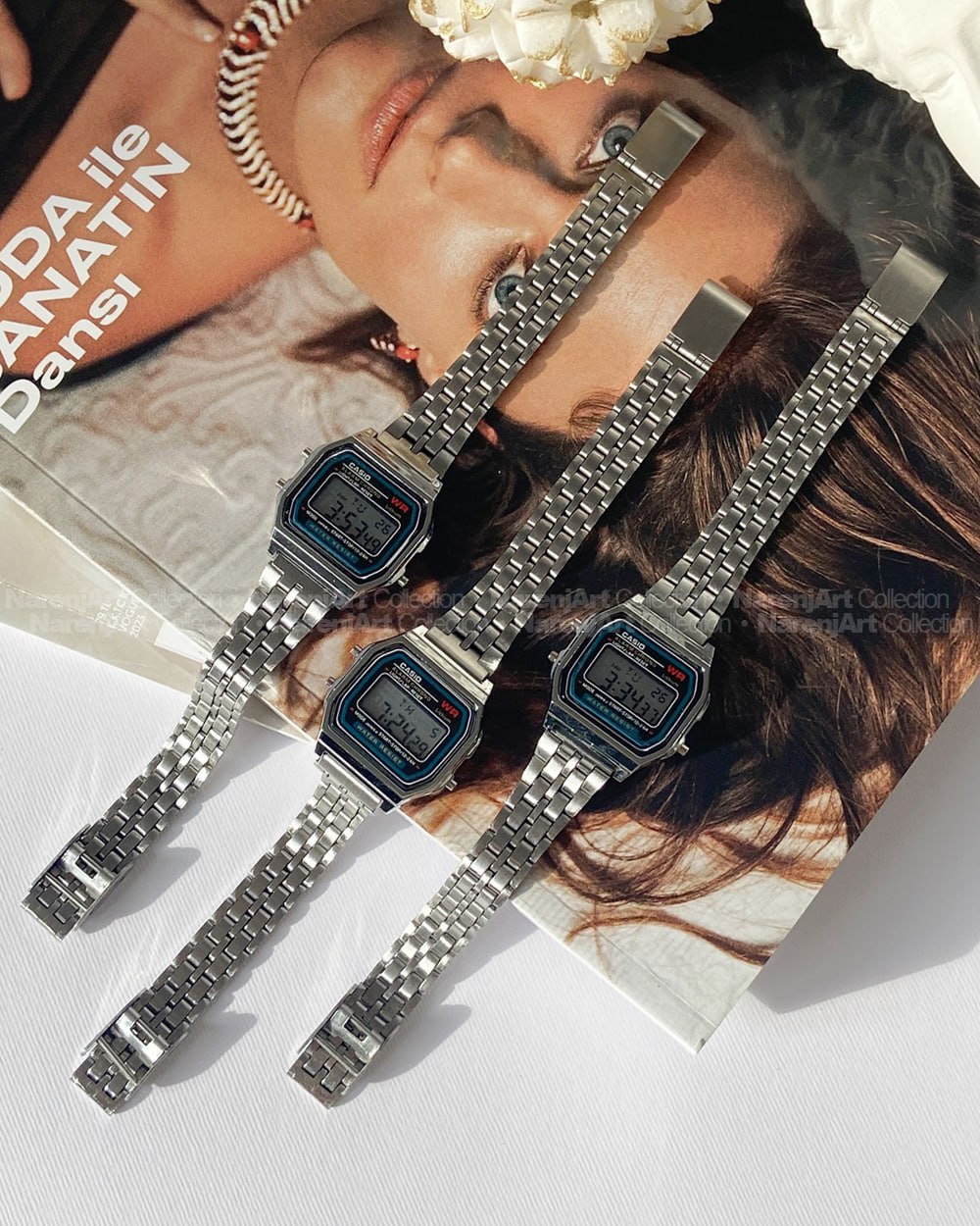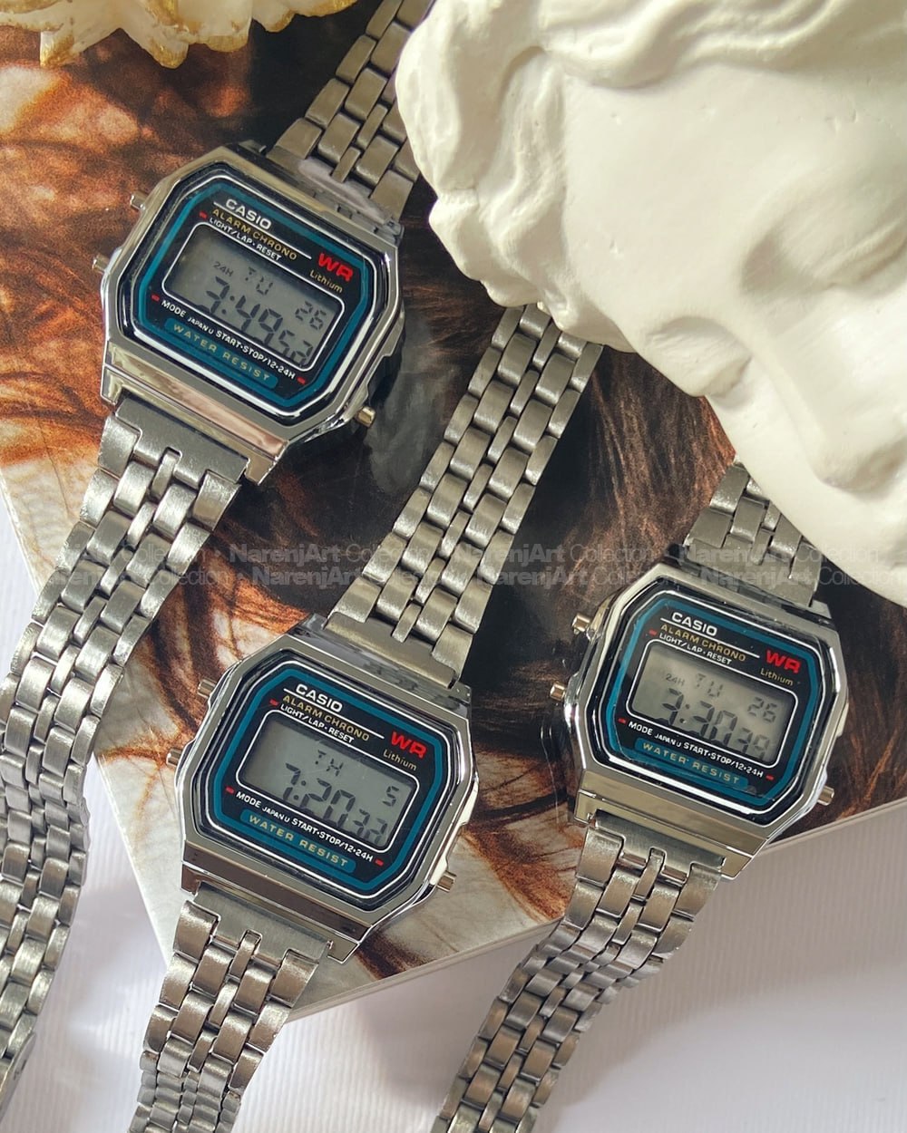 این ساعت همیشه ترند پرطرفدارمون فول استیله و سایز قاب و صفحه حدود ۲در۲ سانتیمتره. رنگ ثابت و ضدحساسیتن که برا استفاده دائمی عالین. بندشون قابلیت تنظیم سایز داره و باطریشونم که قابل تعویضه.
