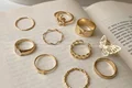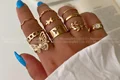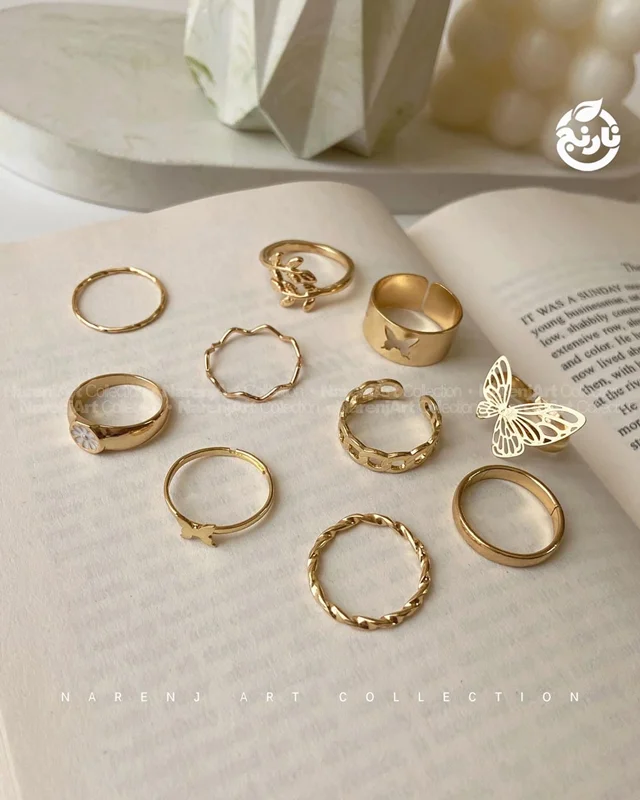 این ست انگشتر طلایی کوپر هستش و آبکاری شده که ضدحساسیته و جزو کارای مراقبتی هست یعنی برا اینکه طول عمر کار بیشتر بشه بهتره در معرض الکل یا انواع شویندهها نباشه. داخل هر ست بصورت میکس سایزای ۵-۶-۷-۸ موجودن و بعضی مدلاشم فری سایز و قابل تنظیمه که برای سایزای ۹ یا حتی ۱۰ قابل استفادهس.